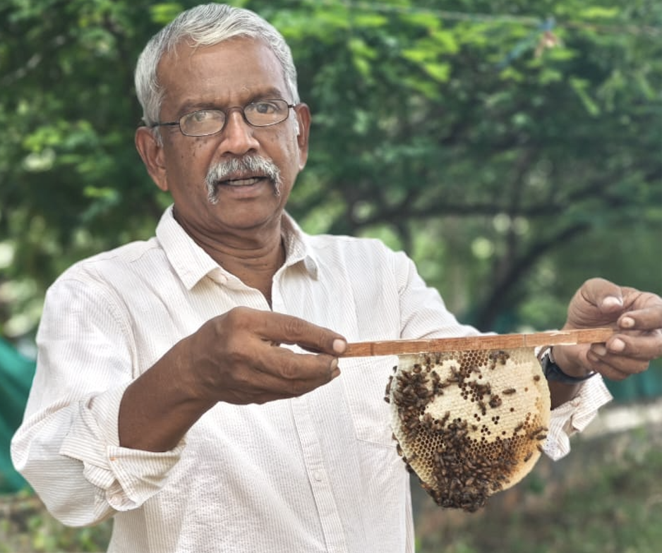 Kannan Raveendran, from SEEDS Trust , Ashoka Fellow (2003-04 ) and works as a beekeeper specializing in Apis cerana, while also cultivating indigenous trees to support local ecosystems. A passionate lepidopterist, Kanan grows plants specifically to support butterfly larvae, contributing to habitat conservation. Additionally, Kanan produces shade-grown robusta coffee, promoting a balance between agriculture and environmental health.