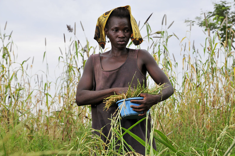 A farmer harvests rice at her farm in Ghana’s Upper West Region, which has suffered failed rains and rising temperatures. Photo from CIAT.