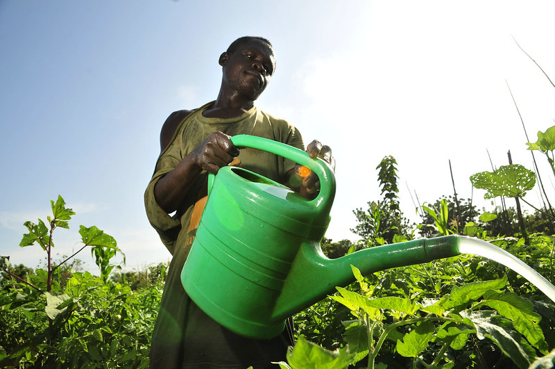 A vegetable farmer with his watering cans in Ghana’s Upper West Region, which has suffered failed rains and rising temperatures. Photo by Alliance of Bioversity International and CIAT.